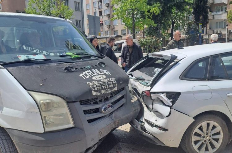 Bursa İnegöl'de yayaya yol vermek isteyen otomobile kamyonet çarptı; 3 kişi hastaneye kaldırıldı.