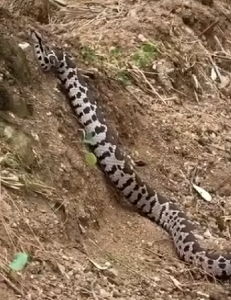 Şeritli engerek olarak bilinen yılan bir vatandaşın kamerasına yansıdı.
