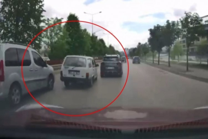 Bursa'da sürücüsünün makas attığı otomobilin, üç aracın arasından hızla geçerek yaptığı tehlikeli manevra, başka bir aracın kamerasına yansıdı.