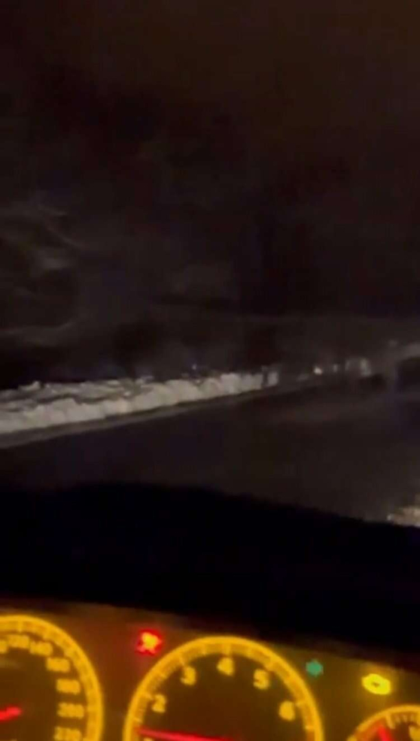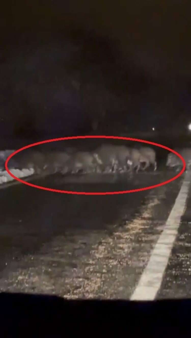 Bursa’nın dağ ilçelerinden Keles’te yoğun kar yağışı sonrası domuz sürüsü yiyecek aramak için karayoluna indi. O anlar anbean kameraya yansıdı.