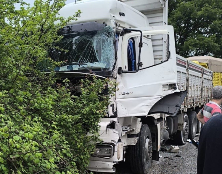 Alınan bilgilere göre Orhangazi istikametine doğru gitmekte olan bir tır, yağışında etkisi ile daralan yolda karşı yönden gelen başka bir tırın dorsesine çarptı.