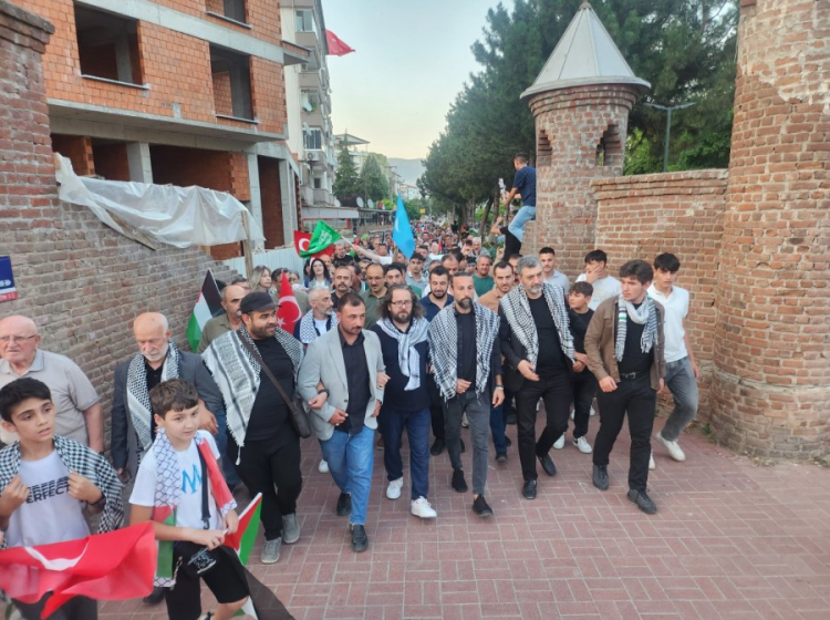Bursa'nın Orhangazi ilçesinde bu akşam düzenlenen ''Gazi'den Gazze'ye Bir Nefes'' programı öncesi, Alis Yürüyüş yolundan Cumhuriyet Alanına kadar süren yüzlerce kişinin katıldığı bir yürüyüş düzenlendi. "Kahrolsun İsrail" ve "Nehirden denize özgür Filistin" sloganları atılarak yapılan yürüşüye Belediye Başkanı Bekir Aydın, bazı siyasi partilerin ilçe başkan ve yöneticileri, Ülkü Ocakları Başkanı Uğur Kavak, STK'lar ve yüzlerce vatandaş katıldı. Orhangazi İlçe Emniyetine bağlı trafik ekiplerinin güvenlik önlemleri altında yapılan yürüyüş, Cumhuriyet Alanında son bulurken, daha sonra yürüyüşte bulunan kalabalık alanda yapılan "Gazi'den Gazze'ye Bir Nefes" programına katıldı.