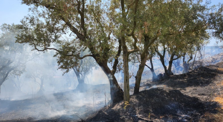 Çıkan yangın vatandaşlarında desteği ile kısa sürede kontrol altına alınırken, alevlerin sardığı çok sayıda zeytin ağacı zarar gördü.