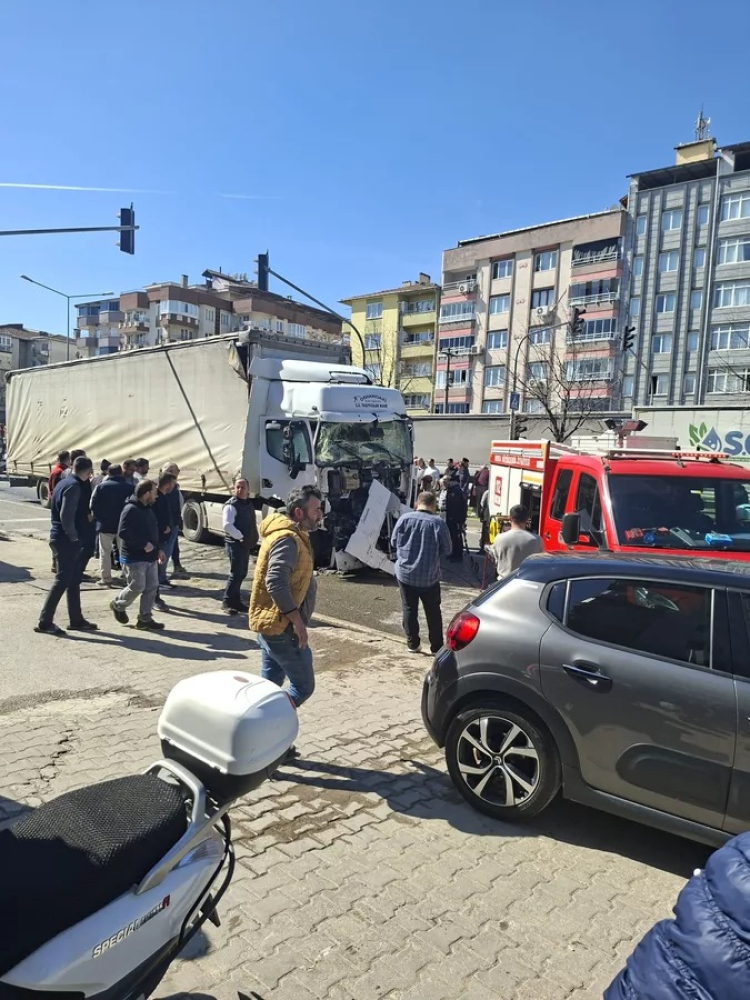 Kazada kamyona arkadan çarpan tır sürücüsü araç içinde sıkışırken, itfaiye ekipleri tarafından bulduğu yerden çıkarılıp sağlık ekiplerine teslim edildi.