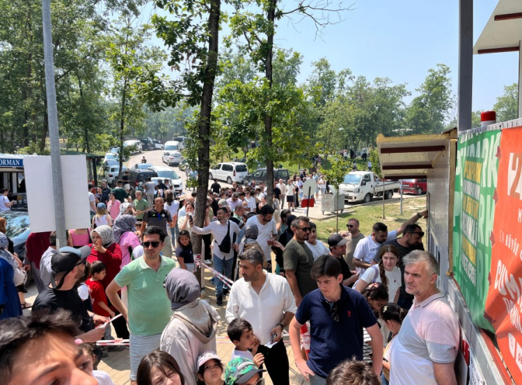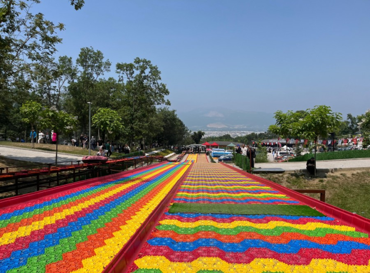 Öte yandan, 225 metrelik dev kaydırağa binmek için saatlerce sıcak altında bekleyen Bursalılar, eğlenceli anlarında tadını çıkardı.