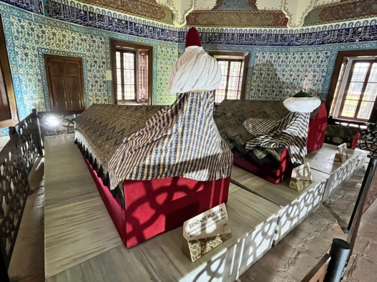 Türbe içerisinde yer alan dört sandukanın Şehzade Mustafa, annesi Mahidevran Hatun ve Şehzade Bayezid'in oğlu Osman'a ait olduğu biliniyor. Diğer sandukanın kime ait olduğu ise kesin olarak bilinmiyor.