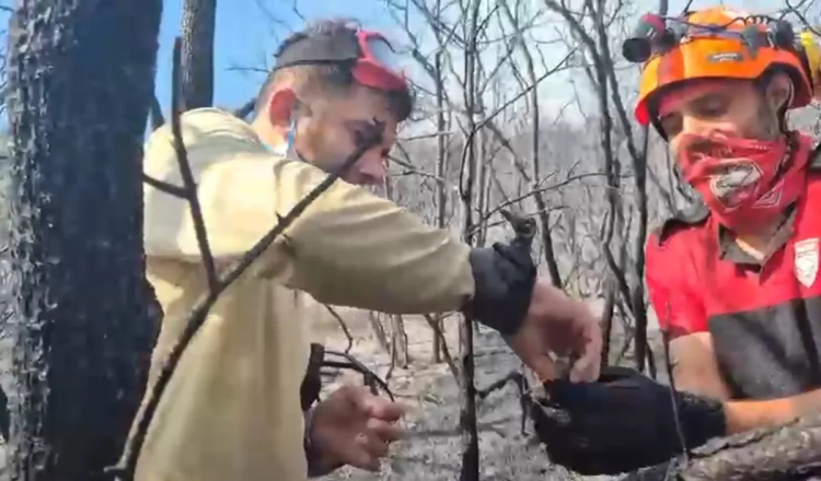 Bursa'nın Yenişehir ilçesine bağlı Marmaracık Mahallesi ile Kestel'in Seymen Mahallesi arasındaki ormanlık alanda çıkan yangına müdahale sürerken, alevlerden etkilenen bir ağaçta yuvasından düşen yavru kuş, Nilüfer Arama Kurtarma (NAK) ekipleri tarafından kurtarıldı.