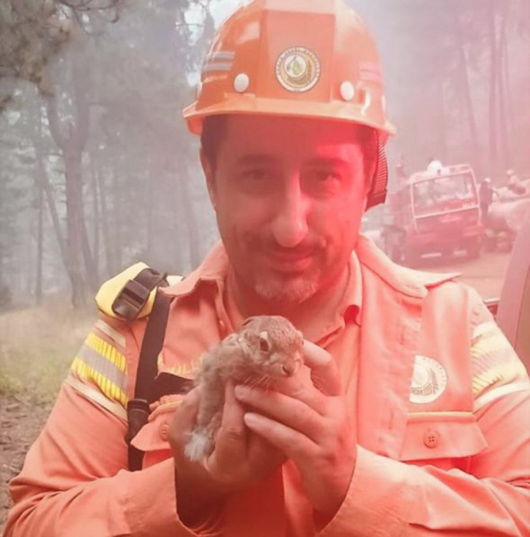 Bursa'da günlerdir süren orman yangınları doğaya ve insana verdiği zararın yanında hayvanlar için de tehdit oluşturuyor. Yangına müdahale eden bir görevlinin alevlerin arasından kurtardığı tavşan yürekleri bir nebze de olsa ısıttı.