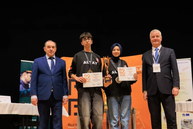Bursa Yıldırım Ticaret Mesleki ve Teknik Anadolu Lisesi 11'inci sınıf öğrencileri Saltukcan Özgünal ve Ecrin Gülser, öğretmenleriyle birlikte geliştirdikleri 'Altay' isimli robotla, Çekya'da düzenlenen, 8 ülkeden 28 takım 56 öğrencinin katıldığı 'RoboPlzen 2026'da 'Otonom Araç Kategorisi'nde dünya 2'ncisi oldu.