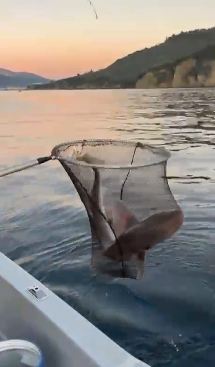 Balıkçılar, köpek balığını görüntüledikten bir süre sonra yeniden denize bıraktı.