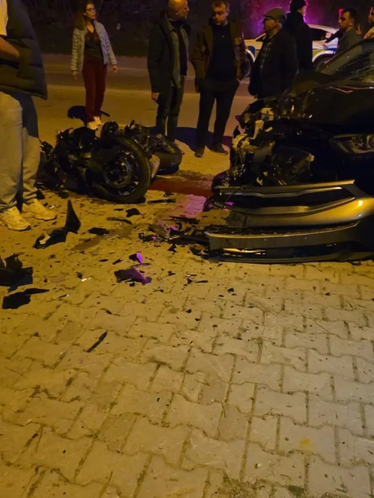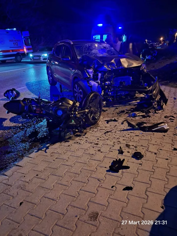 Edinilen bilgilere göre; karşı istikametlerden gelen motosiklet ve otomobil, araçlardan birinin şerit değiştirmesi sonucu kafa kafaya çarpıştı.