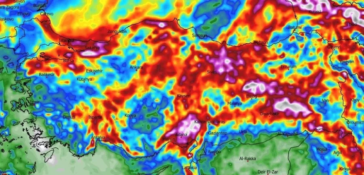 Paylaşılan yağış haritasına bakıldığında, Bursa ve Güney Marmara hattının en yoğun yağış alan bölgeler arasında olduğu görülüyor. Haritadaki renklere göre Bursa üzerinde yoğunlaşan turuncu, kırmızı ve yer yer mor renkler, bölgeye düşecek metrekare başına yağış miktarının mevsim normallerinin üzerine çıkacağını işaret ediyor