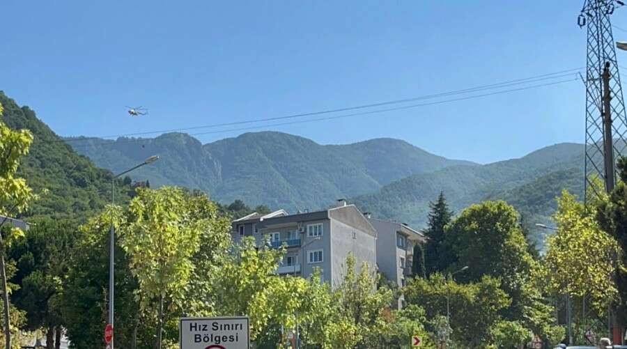 Çıkan yangın Yıldırım ilçesinin birçok noktasından da gözükürken helikopter ile de yangına müdahale başladı.