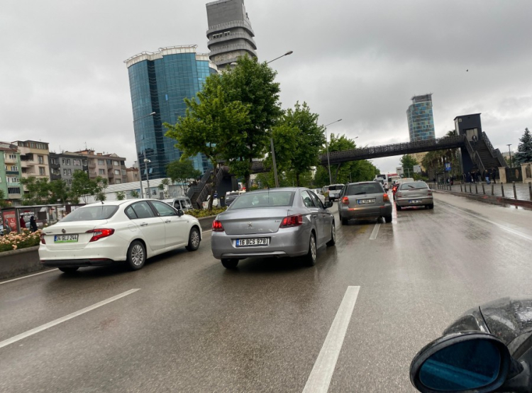 Meteoroloji ve Bursa Valiliği'nden dün gelen kuvvetli yağış uyarısı, Bursa'da bugün etkisini gösterdi. Şiddetli yağış an itibarıyla başlarken, şehir içi trafikte kitlendi.