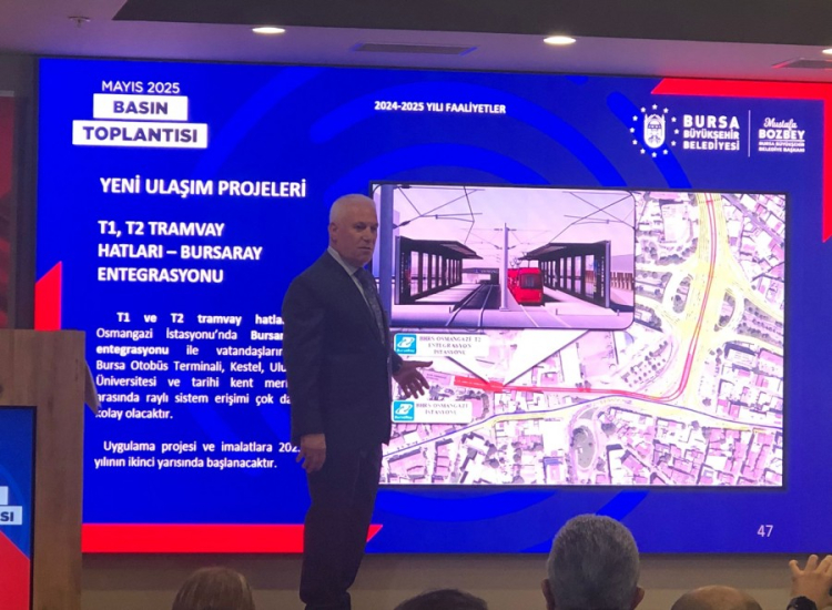 Bursa'da en çok kullanılan toplu ulaşımlardan olan raylı sistemlerin gelişeceğini ve daha çok güzergaha hizmet vereceğini duyuran Bozbey, "Yaklaşık 10 kilometre uzunluğunda ve 9 istasyondan oluşması planlanan bu hat, Paşaçiftliği ve Mimar Sinan-BTÜ istasyonlarında Bursaray'a entegre olacak. Bu sayede, Ankara Yolu ile 11 Eylül Bulvarı arasında yaşayan yaklaşık 420 bin hemşehrimiz, raylı sistem konforuyla ulaşım imkânına kavuşacak. Fizibilite çalışmalarına, Bursa Ulaşım Ana Planı ile koordineli biçimde, 2025 yılı sonunda başlanacak. T1 ve T2 tramvay hatlarını, Osmangazi İstasyonu üzerinden Bursaray'a entegre ediyoruz. Bu sayede vatandaşlarımız; Bursa Otobüs Terminali, Kestel, Uludağ Üniversitesi ve tarihi kent merkezi arasında raylı sistemle çok daha kolay ve hızlı ulaşım sağlayabilecek. Uygulama projesine ve imalatlara 2025 yılının ikinci yarısında başlanacak" dedi.
