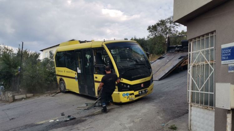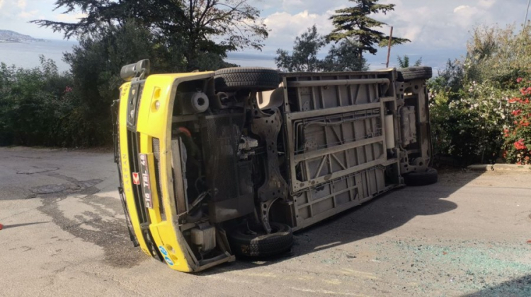 Bursa'nın Mudanya ilçesinde sürücüsü durdurup indikten sonra kendiliğinden hareket eden toplu taşıma aracı kayarak devrildi