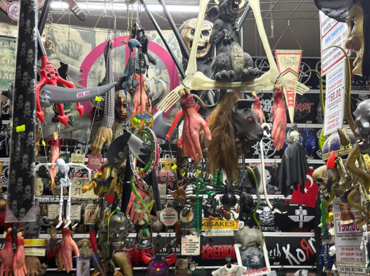 Şehrin merkezinde yer alan mağaza, sadece ürün çeşitliliğiyle değil, duvarlarından sarkan kostümler, asılı aksesuarlar, yılların tişört koleksiyonları ve nostaljik atmosferiyle de ziyaretçilere keyifli bir deneyim sunuyor.