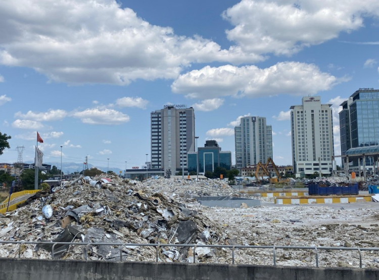 Depreme dayanıksız olduğu gerekçesiyle geçtiğimiz aylarda yıkımına başlanan CarrefourSA Bursa AVM'nin son hali dikkat çekti.