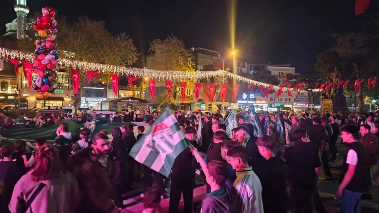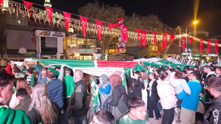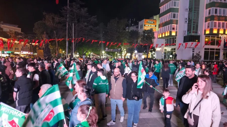 Orhangazi'nin Cumhuriyet alanında binlerce vatandaş, Bursaspor'un şampiyonluğunu kutlamak için bir araya geldi.
