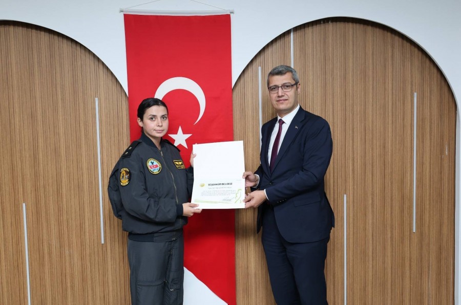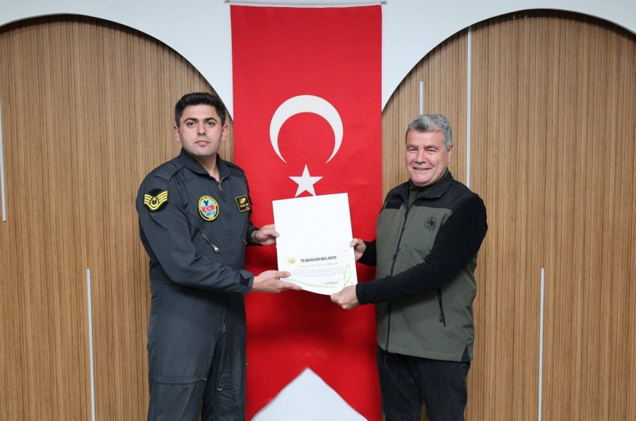 2025 yılı boyunca meydana gelen orman yangınlarında büyük bir özveriyle görev yapan helikopter ekiplerine, düzenlenen törenle teşekkür edilerek belge verildi.