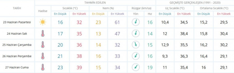 Sıcaklığın Ankara'da 34 derece olması beklenirken Çarşamba günü İzmir'in 38, Manisa'nın 40 derece olması bekleniyor. Akdeniz'de ise sıcaklıklar 40 dereceye yaklaşacak.