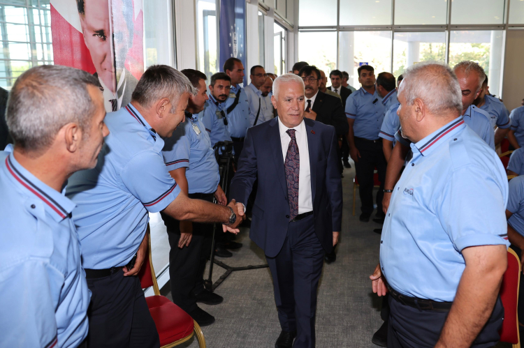 Bursa Büyükşehir Belediyesi çalışanları olarak kamusal anlamda sorumluluk üstlenmiş kişiler olduklarının altını çizen Başkan Mustafa Bozbey, ‘’Kurumsal kimliğimizi koruyarak Bursa Büyükşehir Belediyesi çalışanı olduğumuzu unutmamalı, Bursalılara en iyi hizmeti sunma anlayışında olmalıyız. Çünkü bizim misyonumuz tam olarak budur. Bizler gelip geçiciyiz. Önemli olan, bu kurumdan ayrıldığımızda geriye onur ve gurur duyacağımız bir hizmet bırakabilmektir. Çocuklarımıza, torunlarımıza ‘Biz bu şehre böyle katkılar sunduk’ diyebilmenin kıymeti hiçbir şeyle ölçülemez’’ şeklinde konuştu.