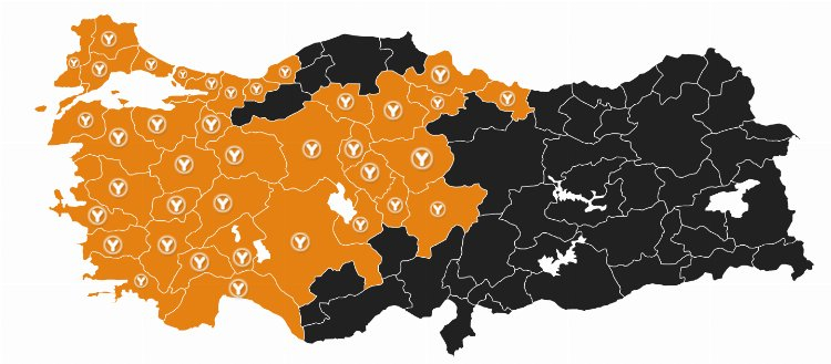 Haritada Y harfi barındıran noktalar Köfte Yusuf'un hizmet verdiği noktaları temsil ediyor...