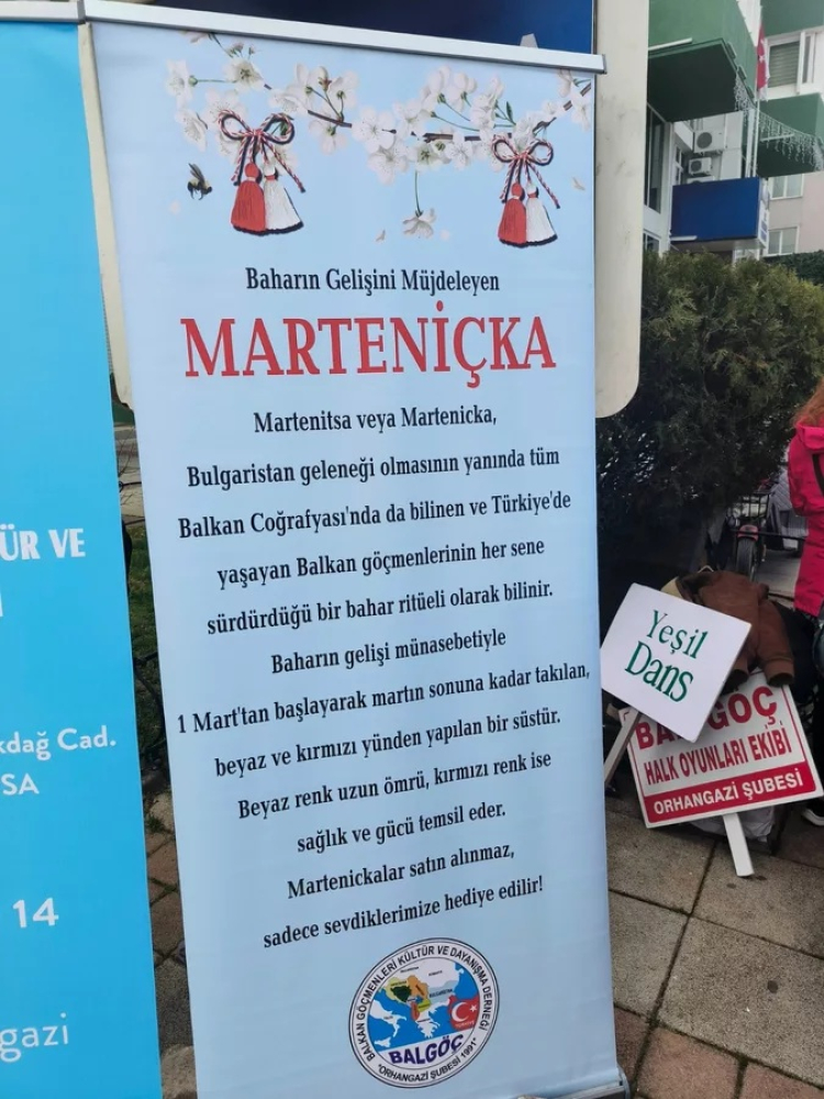 Bursa'nın Orhangazi ilçesinde, Balkan Göçmenleri Kültür ve Dayanışma Derneği (BAL-GÖÇ) tarafından düzenlenen etkinlikte, baharın gelişini simgeleyen "Marteniçka" bileklikleri vatandaşlara hediye edildi.