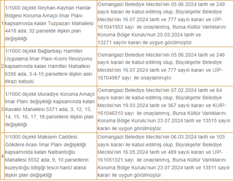 Bursa Osmangazi Belediyesi'nden 4 mahalleye imar planı!