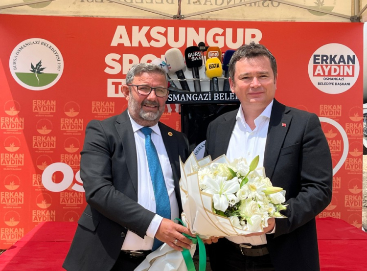 Spor tesisi temel atma töreninde konuşan Osmangazi Belediye Başkanı Erkan Aydın, "Sinan muhtar bizim eskiden beri yol arkadaşımız. Kendisiyle her zaman istişare ettiğimiz, beraber ortak akıl ürettiğimiz ve uzun zamandan beri de yoldaşlık yaptığımız değerli muhtarımıza buradan güzel sözleri için ayrıca teşekkür ediyorum. İnşallah hizmetlerimiz Aksungur Mahallesi'nde devam edecek. Muhtarımız açılıştan önce müjdeyi sen ver dedi. Mahallemizin merkezinde belediye hizmet alanımız var. İnşallah orada da hem bir meyve toplama alanı, üst katında da kadınlara OSMEK kursları ile ilgili bir alanı en kısa zamanda kazandıracağız. Şadi Özdemir başkanımız göreve geldiğinden beri çıtayı yükseltmeye devam ediyor. Biz bir yılda 19 açılış, 8 temel atma gerçekleştirdik. Bu temel atma ise 9'uncusu olacak" ifadelerine yer verdi.