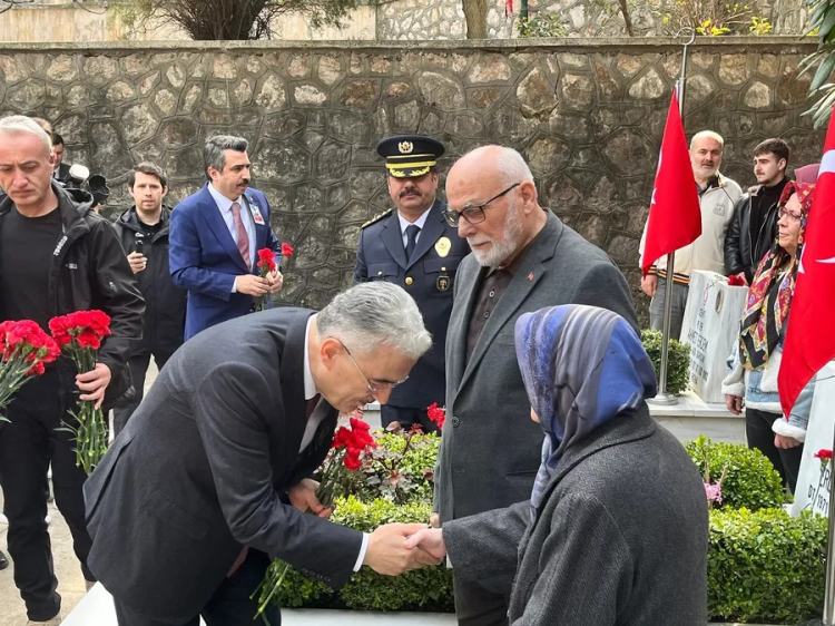 Şehit kabirleri tek tek ziyaret edilerek karanfiller bırakıldı, dualar edildi. Duygu dolu anların yaşandığı ziyarette, Şehitlik Defteri'ni imzalandı.