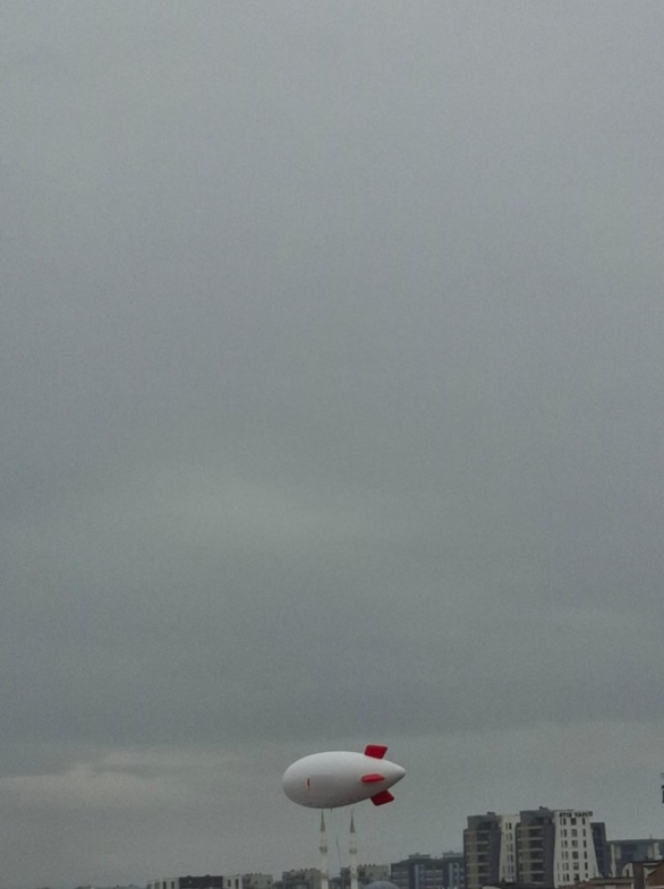 Tasarımı zeplini andıran nesne, vatandaşlar tarafından bir anlık şaşkınlıkla karşılandı.