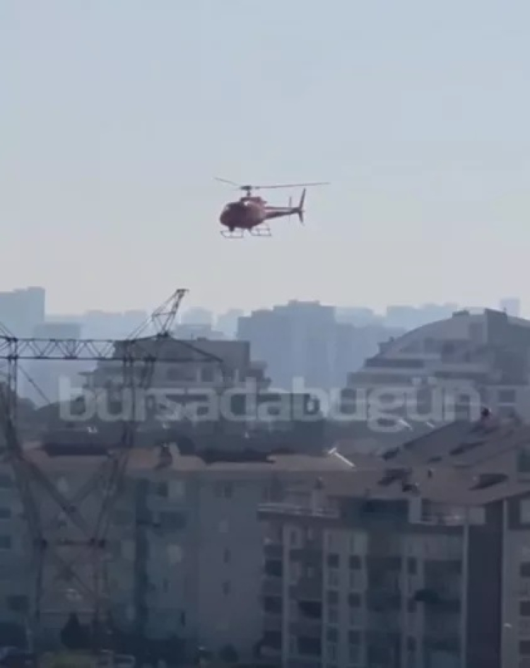 Bursa'nın Nilüfer ilçesi Özlüce Mahallesi'nde sabah saatlerinde gökyüzünde alçak uçuş yapan kırmızı helikopter, mahalle sakinlerinin dikkatini çekti. Gürültüyü duyan vatandaşlar balkonlara koşup olayı anlamaya çalıştı.