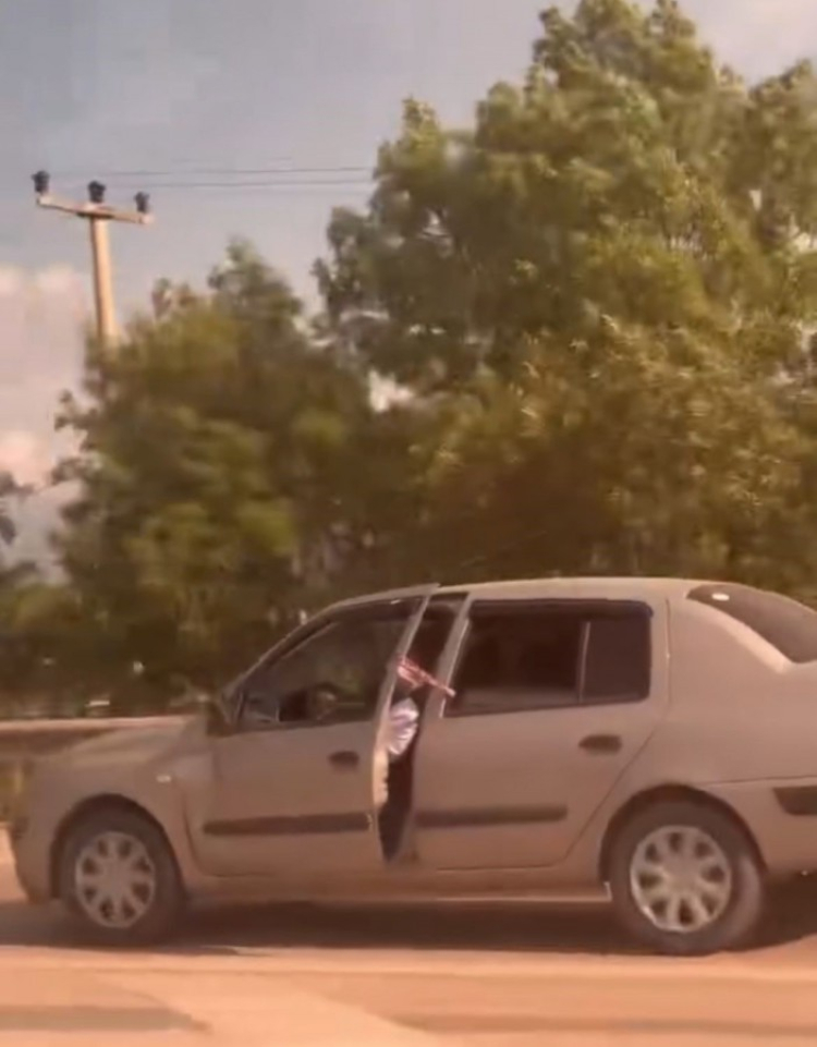 En dikkat çeken görüntülerden biri ise arızalı kapısını ip yardımıyla kapatmaya çalışan bir sürücünün otobanda ilerlemesi oldu.