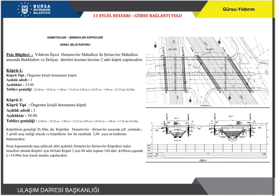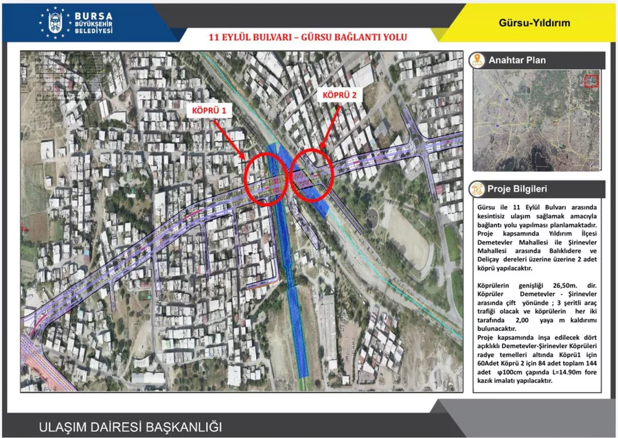 Proje çerçevesinde, Yıldırım ilçesine bağlı Demetevler Mahallesi ile Şirinevler Mahallesi arasında yer alan Balıklıdere ve Deliçay dereleri üzerine iki ayrı köprü yapılacak. Modern mühendislik teknikleriyle inşa edilecek köprüler, bölgedeki trafik akışını büyük ölçüde rahatlatacak.