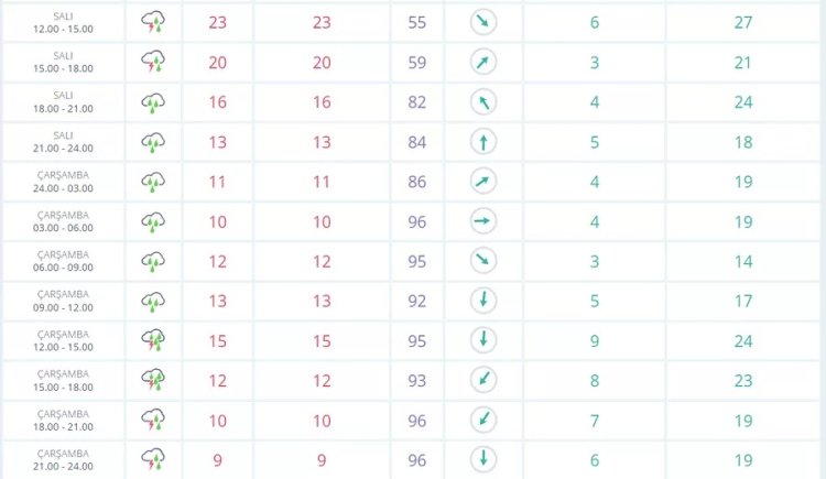 Meteorolojik tahminlere göre şehir genelinde gri gökyüzü ve aralıklı yağışlar, 21 Nisan Salı günü (bugün) saat 15.00 itibarıyla etkisini göstermeye başlayacak.