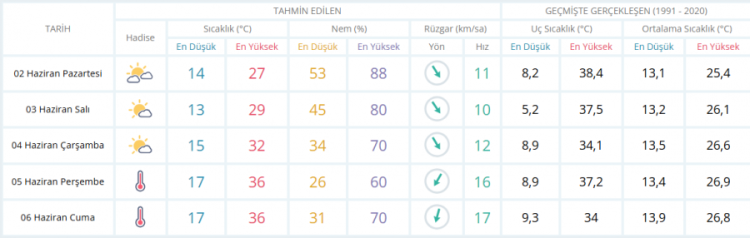 Elde edilen son verilere göre, şehirde Arefe ve Bayramın ilk günü sıcaklık normal seviyelerinin üstüne çıkacak.