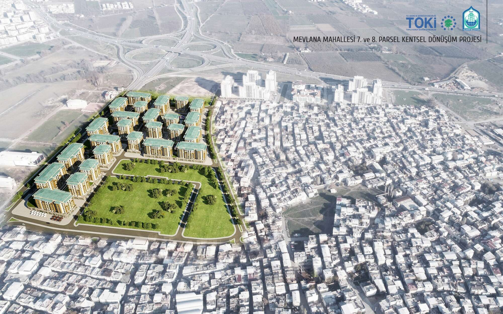 Yıldırım Belediyesi’nin Mevlana Mahallesi’nde TOKİ iş birliği ile hayata gerçekleştirdiği dönüşümde çalışmaların yüzde 60’ı tamamlandı. Domino etkisi ile bölgenin dönüşümüne hız kazandıracak ve model oluşturacak Mevlana Kentsel Dönüşüm Projesi 7. ve 8. etaplar olmak üzere 2 bölümde inşa ediliyor. Deprem riski altındaki güvensiz ve sağlıksız konutların yıkılarak, yerine; modern, güvenli ve sağlıklı konutların yapılacağı projede hak sahipleri ile yüzde 100 oranında uzlaşma sağlandı. Rezerv alan kullanılmadan 60 dönümlük alanda hayata geçirilen dönüşüm kapsamında toplamda 944 konut yıkılırken, yerine bin 244 konut inşa edilecek.