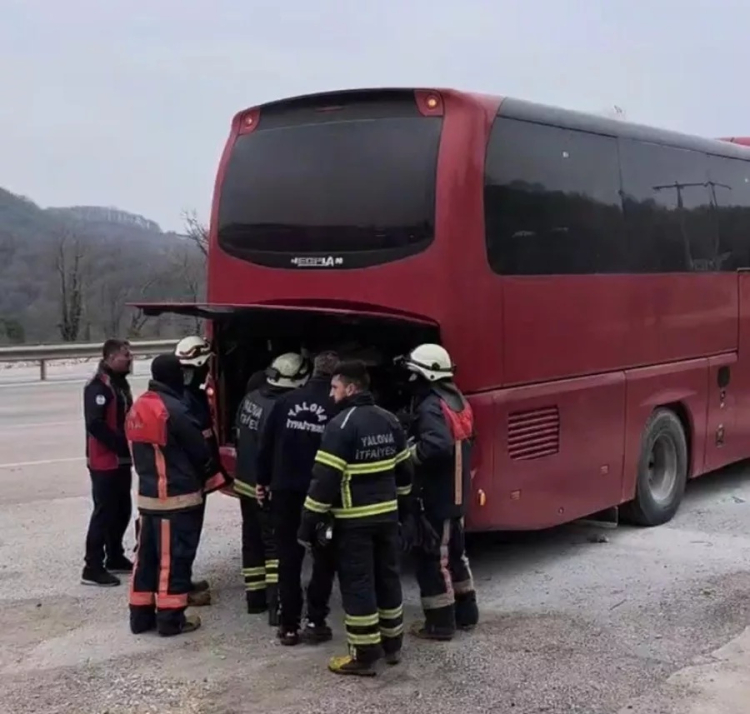 Yalova - Bursa yolu üzerinde seyir halindeki bir yolcu otobüsünün motor kısmında yangın çıktı. Yolcular panik içinde tahliye edilirken, yangın erken müdahale sayesinde tüm otobüsü sarmadan söndürüldü.