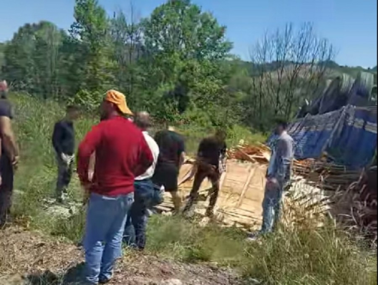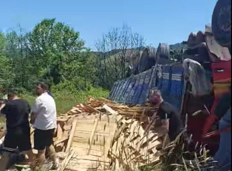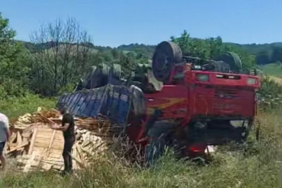 Devrilen kamyonun üzerindeki keresteler ise etrafa saçıldı.