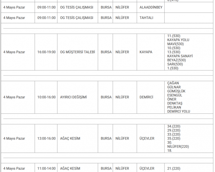 Bursalılar dikkat! Pazar günü o noktalarda elektrikler kesilecek...