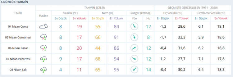BURSA'DA 5 GÜNLÜK HAVA DURUMU