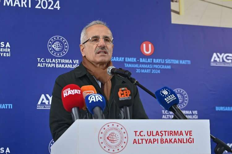 Ulaştırma ve Altyapı Bakanı Abdulkadir Uraloğlu, BURSARAY Emek-Balat Raylı Sistem Hattı Tamamlanma Töreni’ne katıldı. 2002 yılından bu yana Cumhurbaşkanı Recep Tayyip Erdoğan'ın liderliğinde şehirleri hızlı trenlerle birbirine bağladıklarını belirten Uraloğlu, şehir içi ulaşımında da kent içi raylı sistem projelerini birbiri ardına hayata geçirdiklerini söyledi.