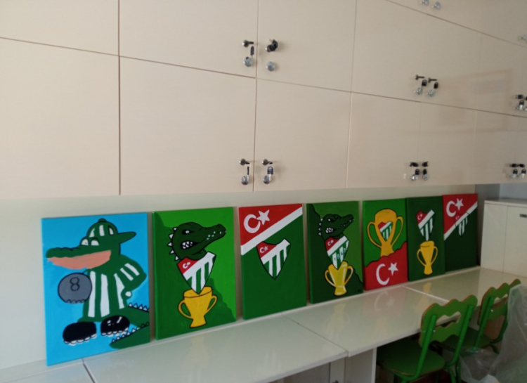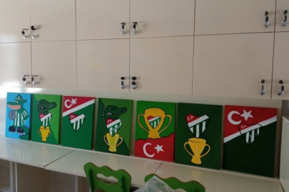 Tophane ilkokulu ve Reşitpaşa ilkokulu öğrencilerinin hayal güçlerini ve Bursaspor sevgilerini birleştirdiği bu eserler arasında, şampiyonluk temalı resimler dikkat çekti.
