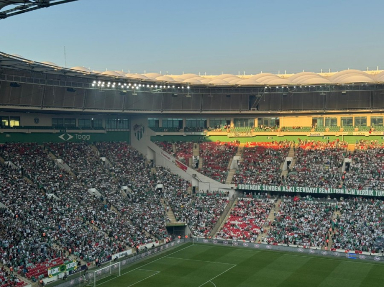 Beste ve bayraklarla stadyuma gelen yeşil beyazlı taraftarlar, takımlarına desteği bir an olsun bırakmadı. 30 Ağustos Zafer Bayramı sebebiyle Türk bayrakları da stadyumda yerini aldı.