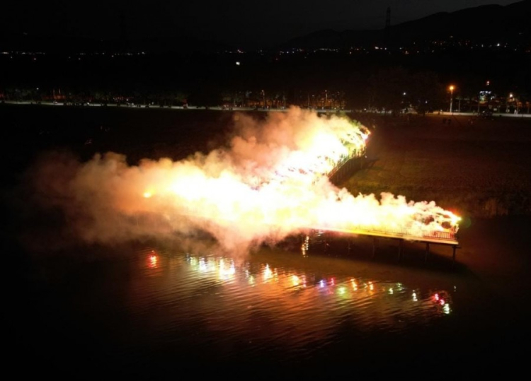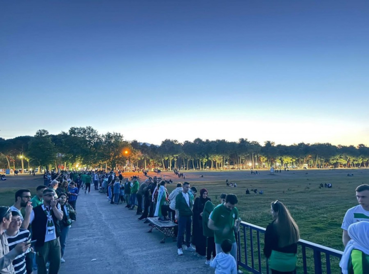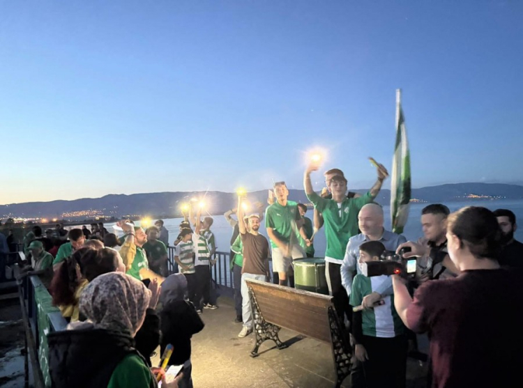 Yüzlerce taraftar, Orhangazi iskelesinde bir araya gelerek yaktıkları meşalelerle görsel bir şölen oluşturdu.