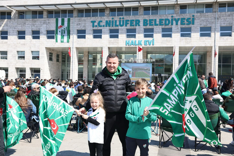 Nilüfer Belediyesi Halk Evi önündeki Cumhuriyet Meydanı, yeşil beyazlı renklere gönül veren taraftarlarla dolup taştı. Her yaştan Bursaspor taraftarının akın ettiği meydanda, şampiyonluk heyecanı hep birlikte yaşandı.