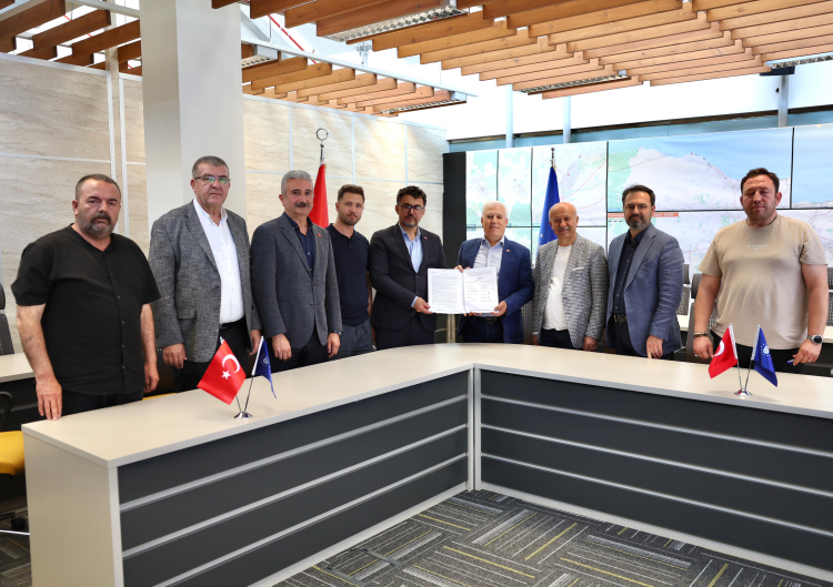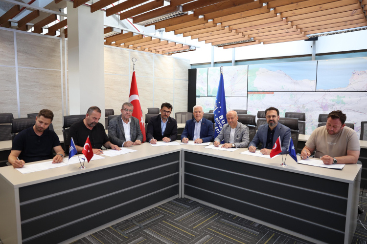 Konuşmaların ardından Başkan Mustafa Bozbey, BURULAŞ Genel Müdürü Fahrettin Beşli, Demiryol-İş Sendikası Adapazarı Şube Sekreteri Hilmi Gültekin, Sodem-Sen Genel Sekreteri Cahit Korkmaz, Sodem-Sen hukuk Koordinatörü Prof. Dr. Süleyman Başterzi, Adapazarı Şube Mali Sekreteri Özkan Çakıroğlu, Şirket İnsan Kaynakları Müdürü Elif Şenol, Sodem-Sen TİS uzmanları Pamir Başer ve Ahmet Yavuz Şentürk, iş yeri temsilcileri Ferit Akkoyun, Ayhan Ceylan ve Murat Çakır arasında toplu iş sözleşmesi imzalandı.