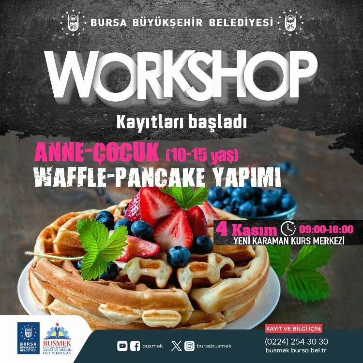 Atölye çalışmalarına katılmak için ön başvurular busmek.bursa.bel.tr adresinden online olarak veya Yeni Karaman Mesleki Eğitim Merkezi’nden yüz yüze yapılabilecek.