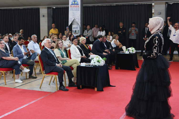 Bursa Büyükşehir Belediyesi’nin en önemli sosyal sorumluluk projelerinden biri olan BUSMEK tarafından düzenlenen ‘BUSMEK Yıl Sonu Sergisi’nin açılışı Atatürk Kültür Merkezi Merinos Yerleşkesi Fuar Alanı’nda gerçekleştirildi. 2024-2025 eğitim öğretim döneminde 16 farklı kurs merkezinde 30 eğitmenin katkısıyla düzenlenen eğitimlere katılan 3 bin 68 kursiyerin ortaya koyduğu yaklaşık bin 200 eser, sergide Bursalıların beğenisine sunuldu. Serginin açılışına Bursa Büyükşehir Belediye Başkanı Mustafa Bozbey ve eşi Seden Bozbey’in yanı sıra Büyükşehir Belediyesi Genel Sekreteri Doç. Dr. Ergül Halisçelik, Genel Sekreter Yardımcıları Ali Altunsoy, Mehmet Emin Direkçi, Mehmet Yıldız ve Mehmet Tözün Bingöl, Büyükşehir Belediyesi, ilçe belediyeleri ve siyasi partilerin yöneticileri, eğitmenler, kursiyerler ve çok sayıda vatandaş katıldı.